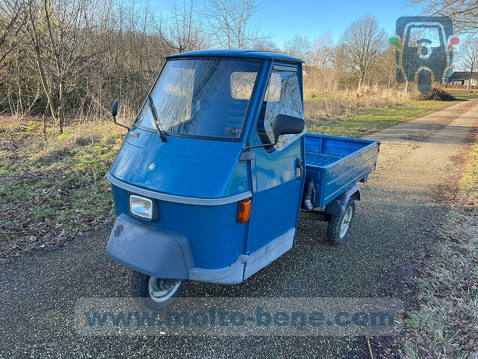 Blue Piaggio Ape 50 in good condition. Starts, shifts, drives, and brakes well. The bodywork is in good condition. The paint is original.